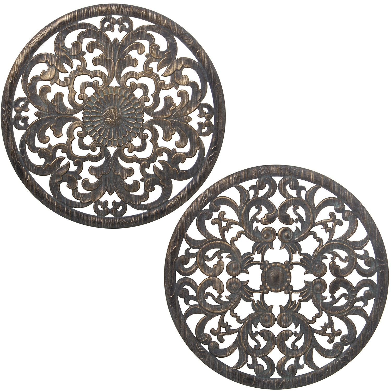 » Decorazioni Da Parete In Legno Traforato - Verde Invecchiato E Dorato Ø60x1,5cm, Madera: D