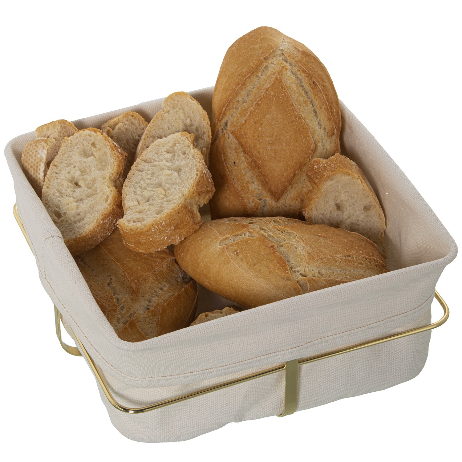 » Cestino Del Pane In Tessuto E Metallo Dorato - Tessuto: 95% Cotone + 5% Poliestere- 21,5x21,5x10cm