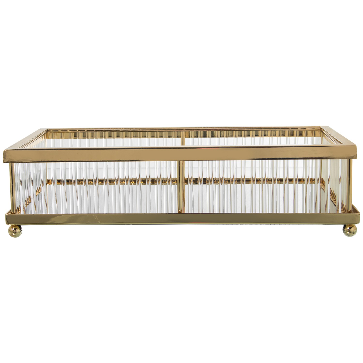 Bandeja Metal Dorado Cristaltransparente 30x18x7cm, Mat:hierro+cristal