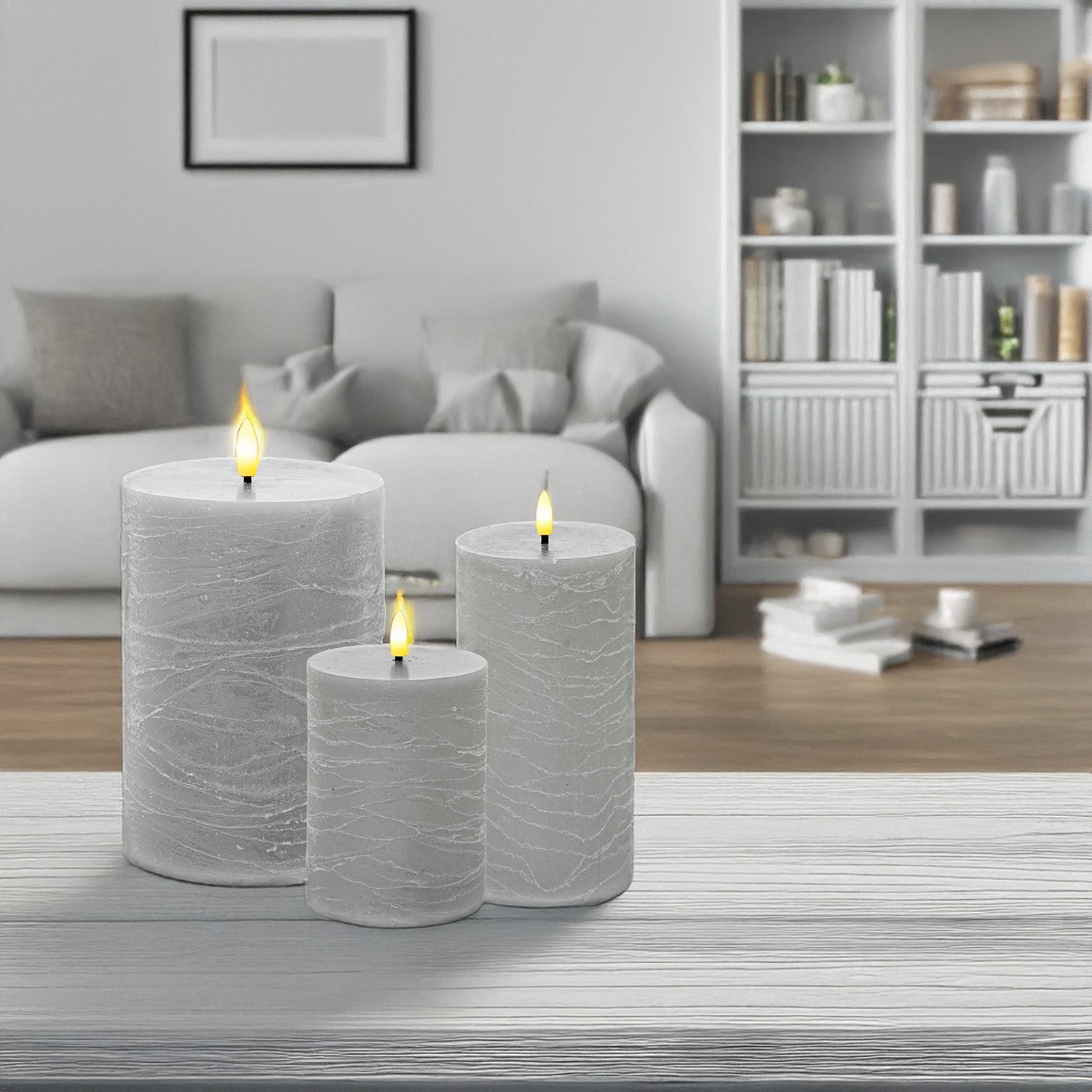 Vela De Cera Led De Cor Cinza (1 Controlo Para Cada 4 Velas)_ø7,5x15cm, Pilhas:2xaa Não Incluídas