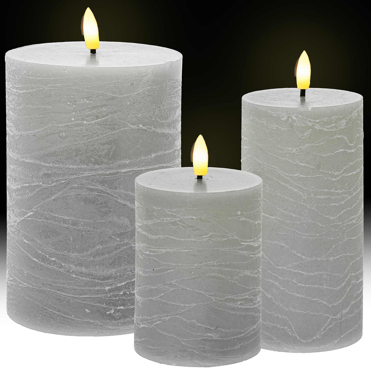 Vela De Cera Led De Cor Cinza (1 Controlo Para Cada 4 Velas)_ø10x20cm, Pilhas:2xaa Não Incluídas