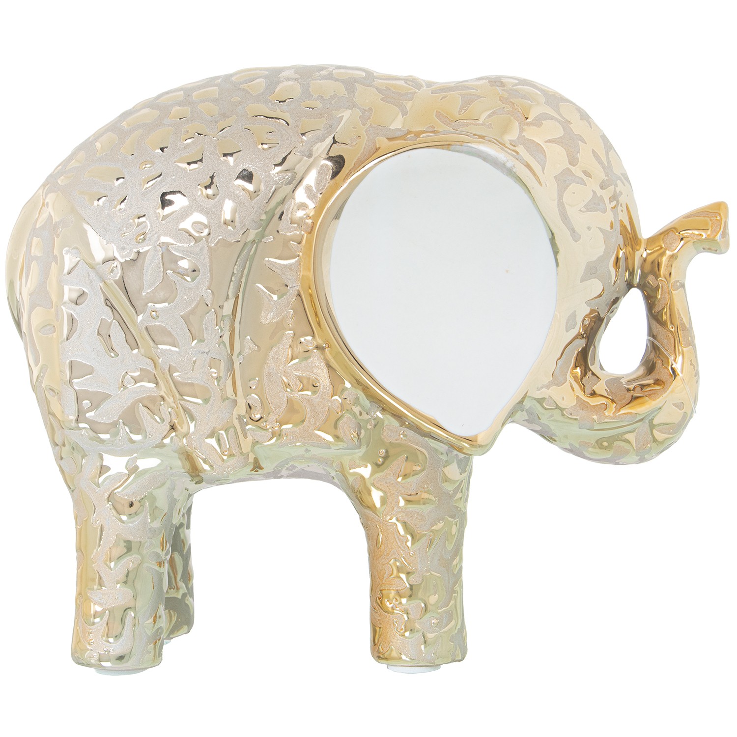 » Figura Elefante Em Cerâmica Dourado/branco 21x9x17cm