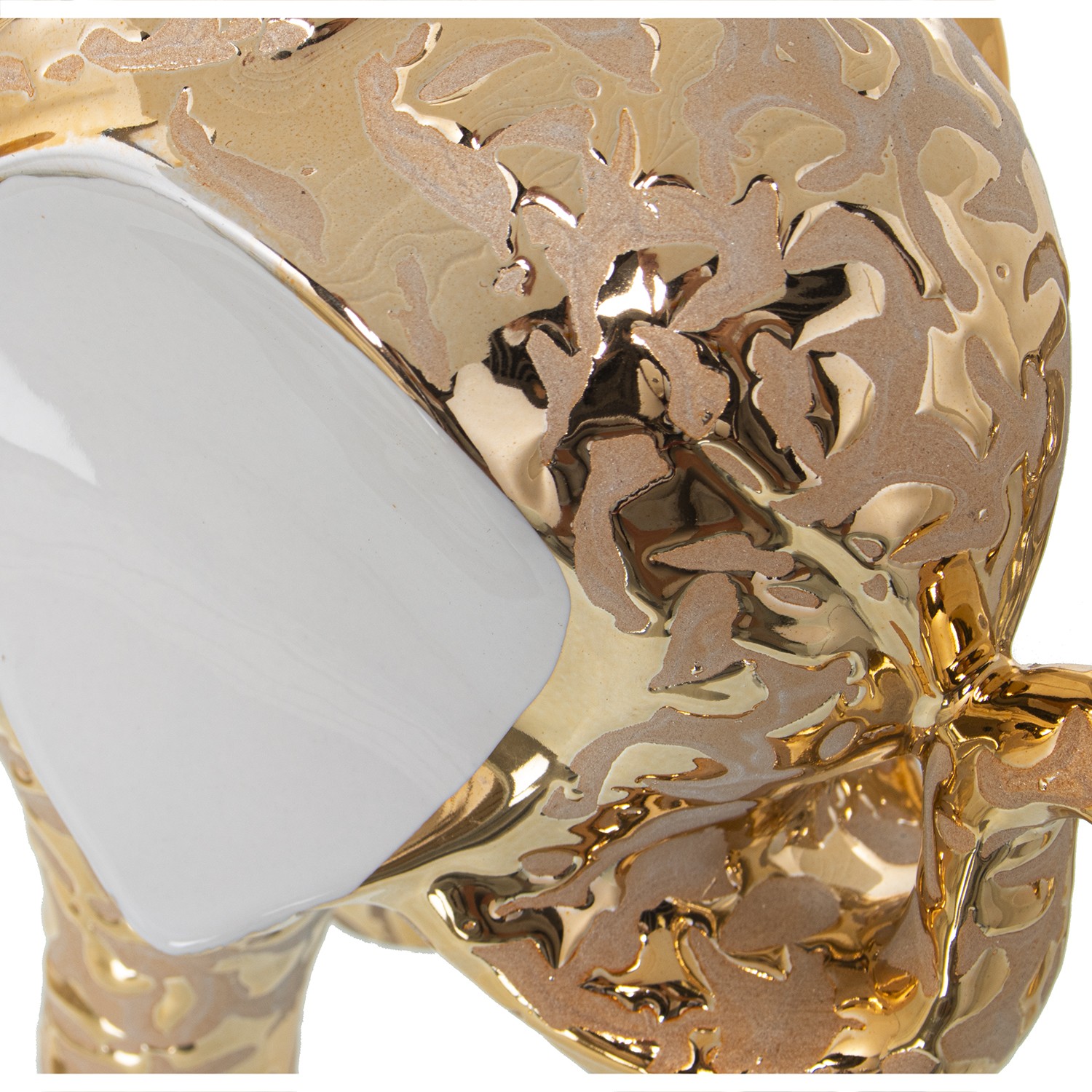 Figura Elefante Em Cerâmica Dourado/branco 21x9x17cm