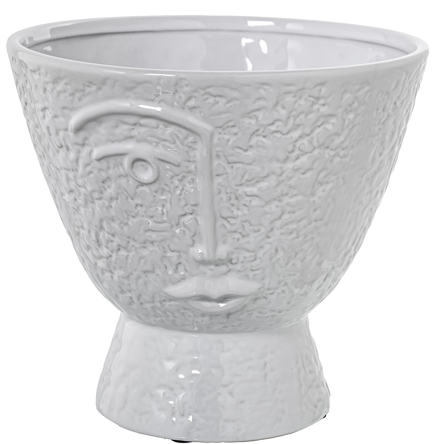 Jarrón Cerámica Rostro Blanco Brillo Ø22x20cm