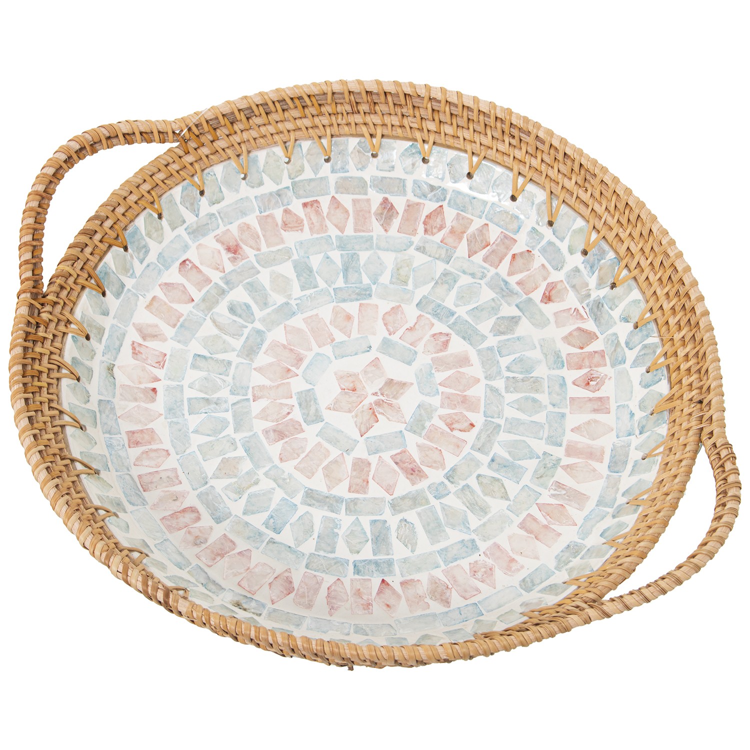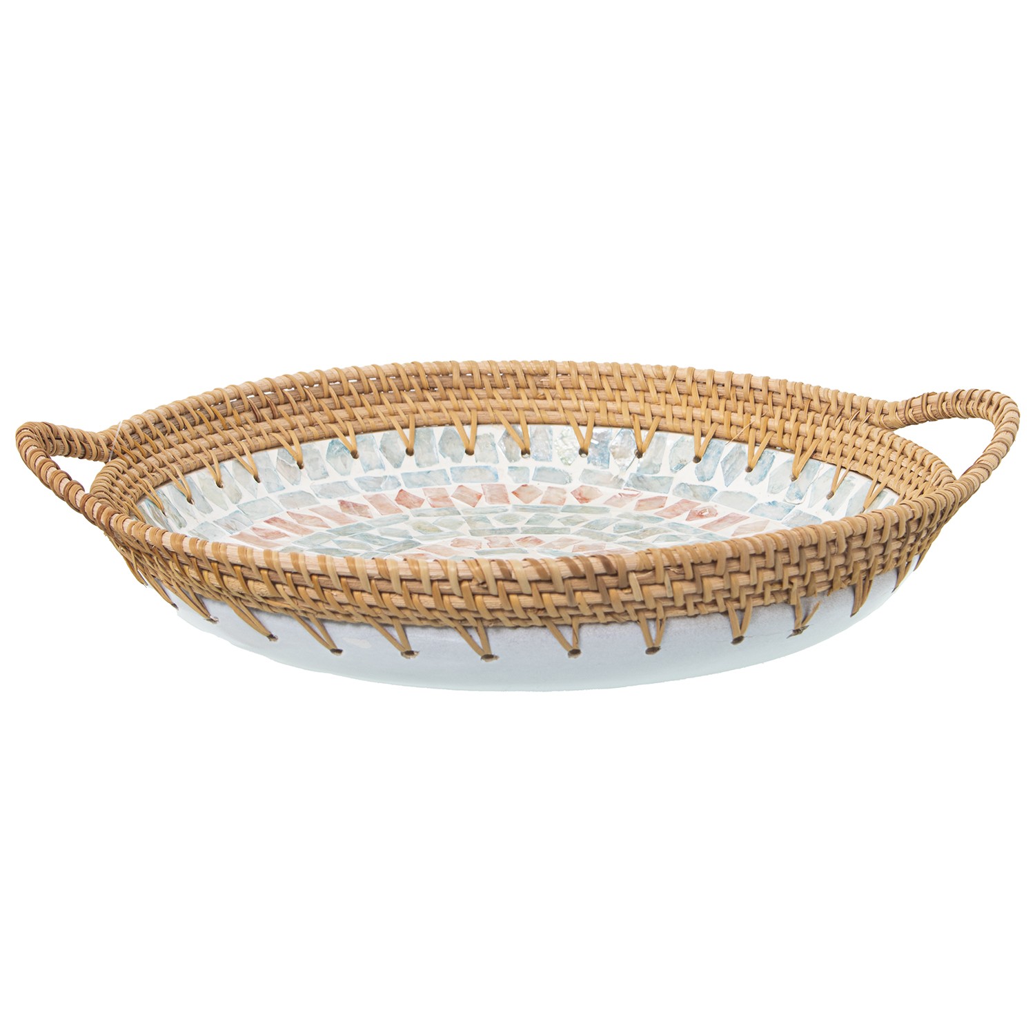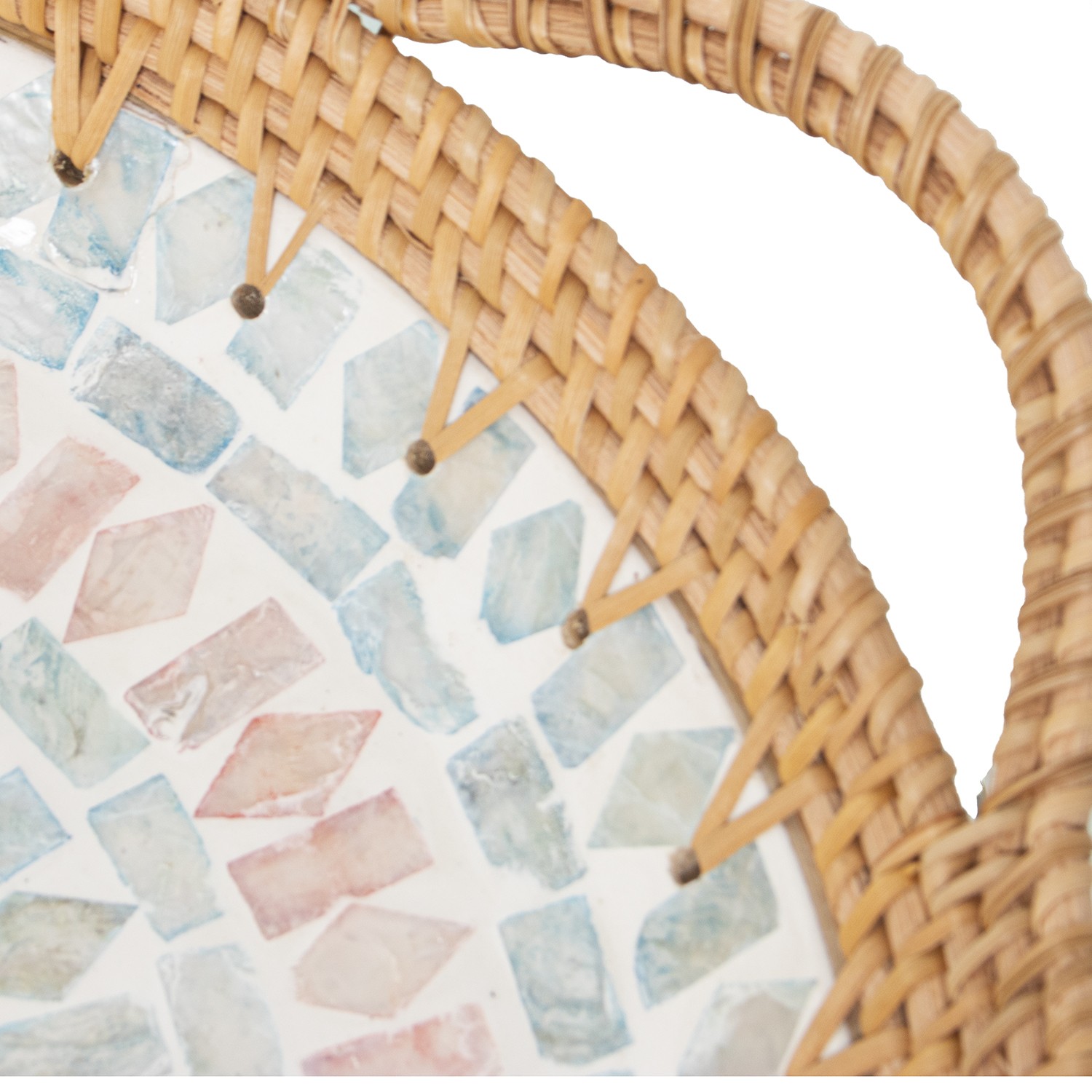 Bandeja C/asas Nácar/ratán 40x33x5/7cm