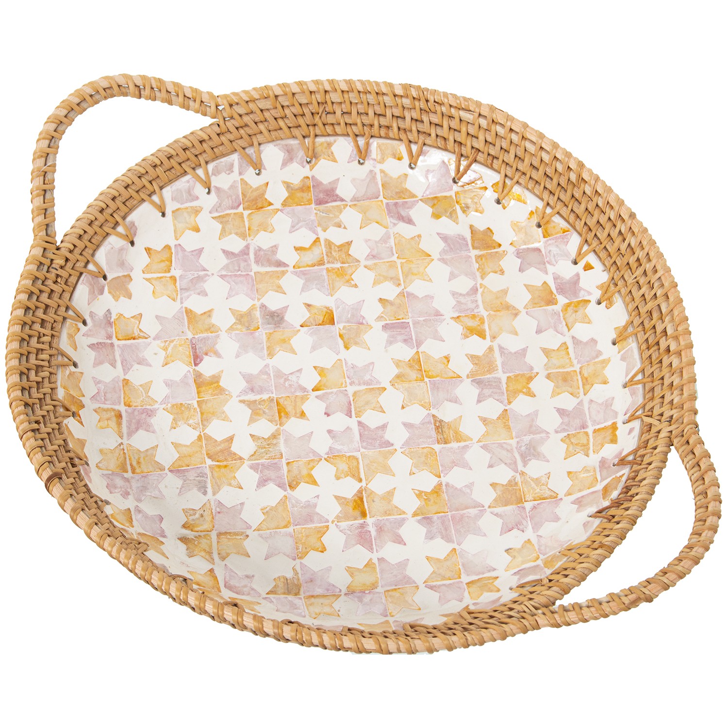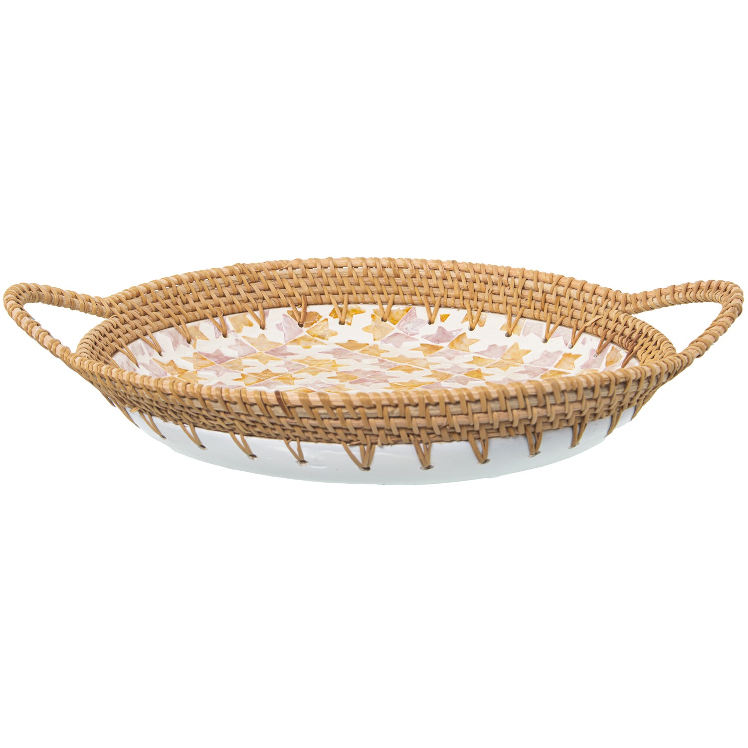 Bandeja C/asas Nácar/ratán 40x33x5/7cm