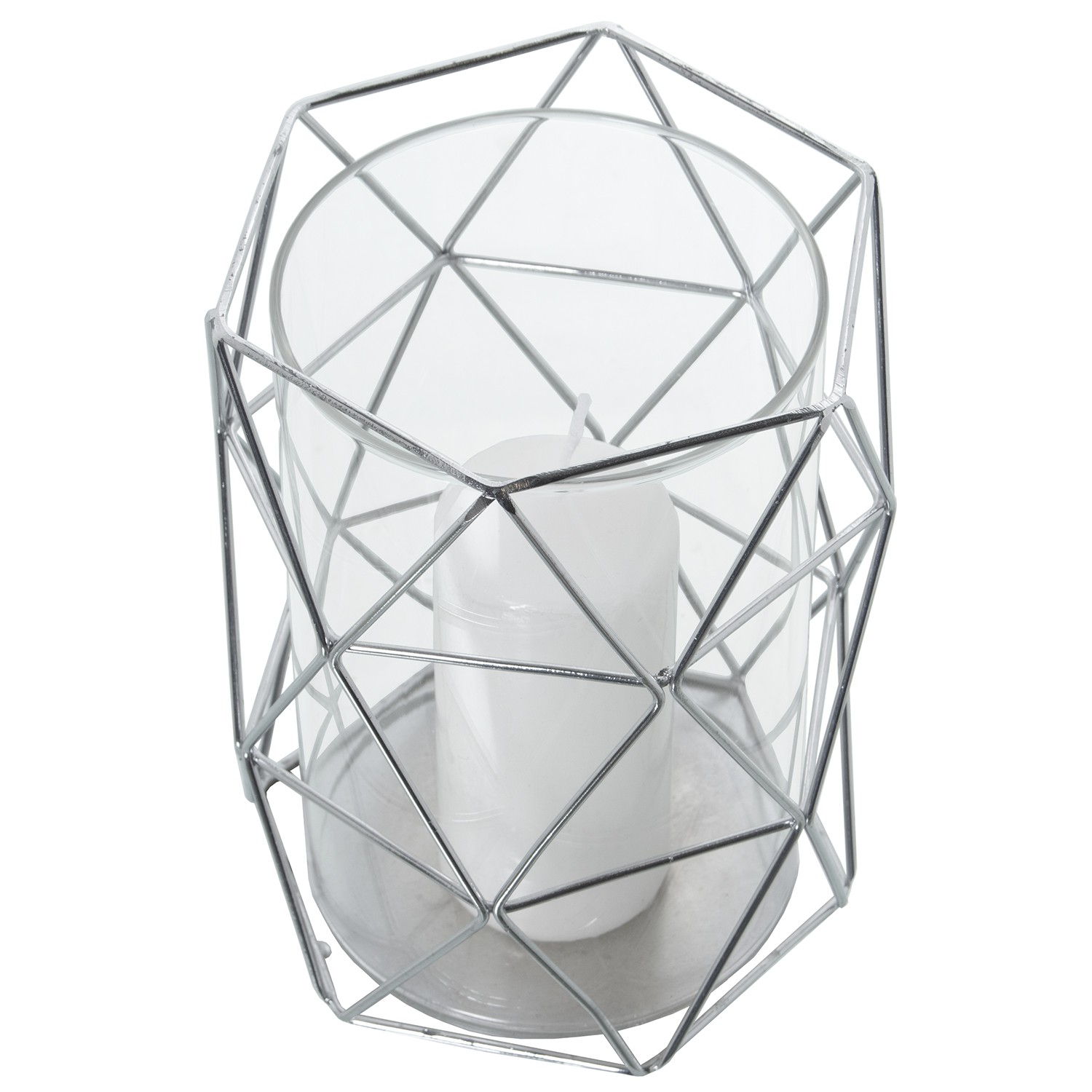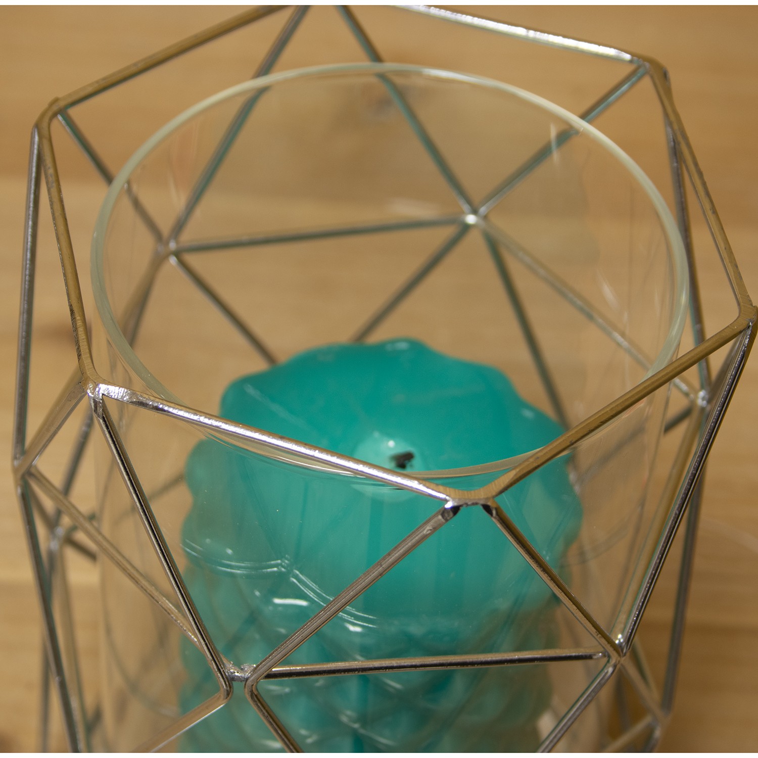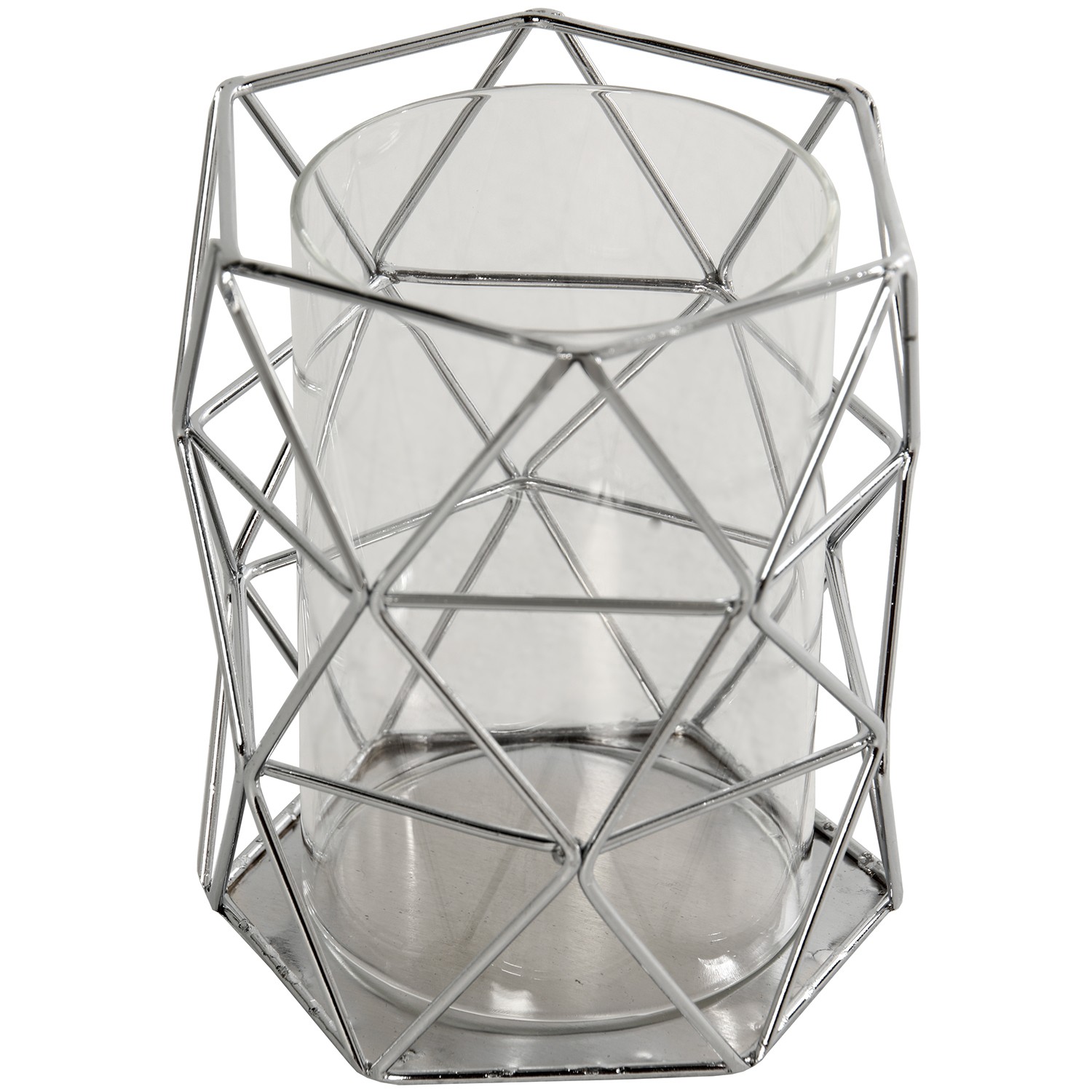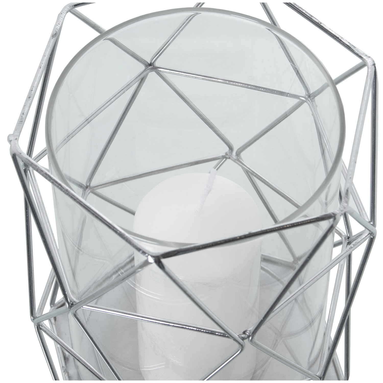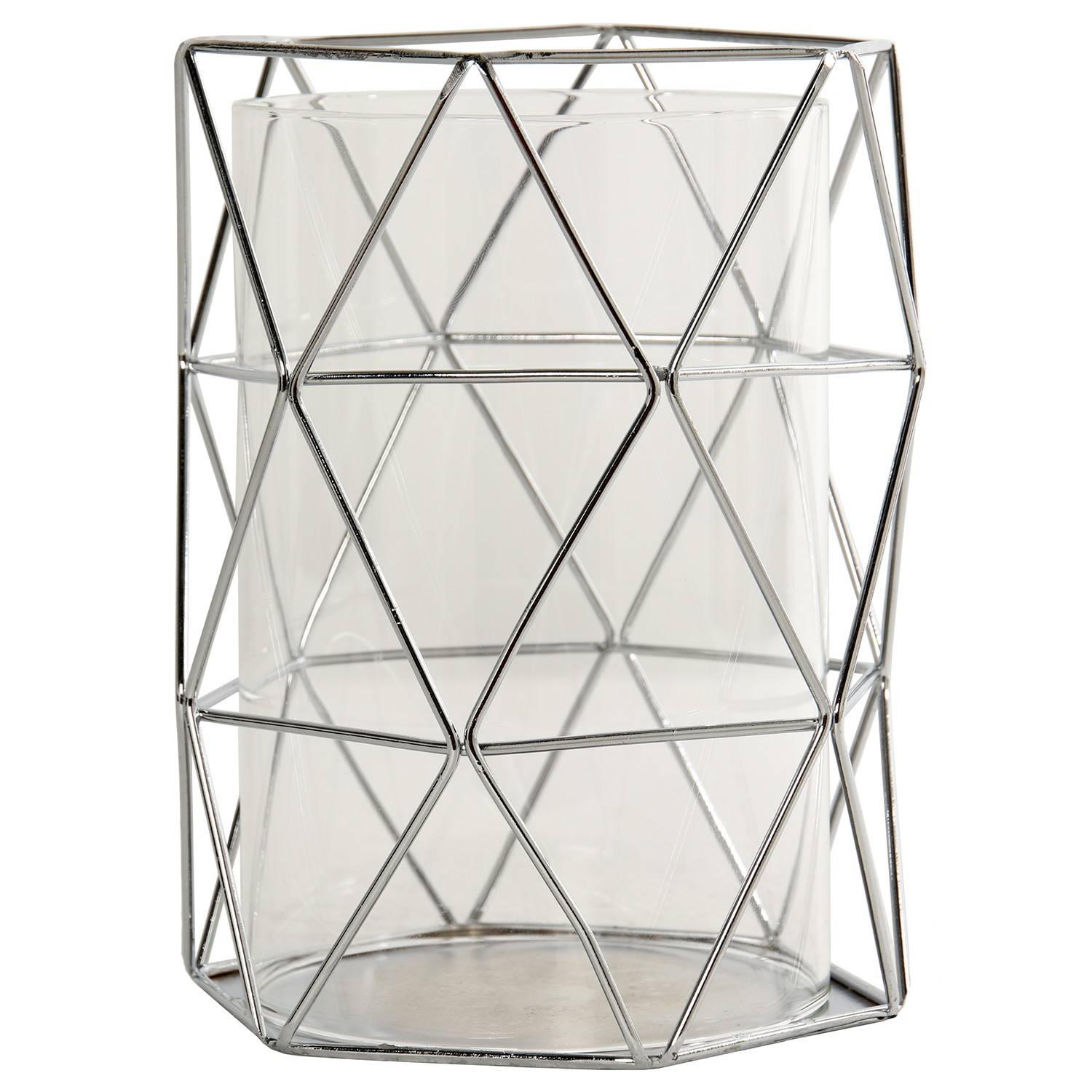 Portavelas Metal Cromado C/cilindro Cristal 12x12x16cm